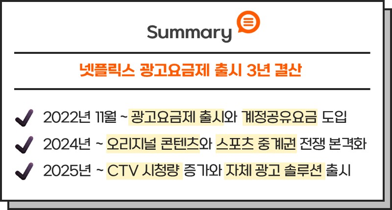 이번 뉴스레터에서는 지난 3년간의 넷플릭스 광고요금제 트렌드를 정리하면서, OTT 업계가 어떻게 함께 변화해왔는지 들여다봤습니다.