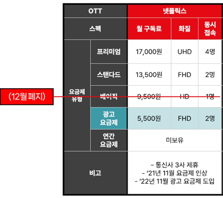 2022년 11월, 넷플릭스는 OTT 시장에 작은 돌 하나를 던집니다.