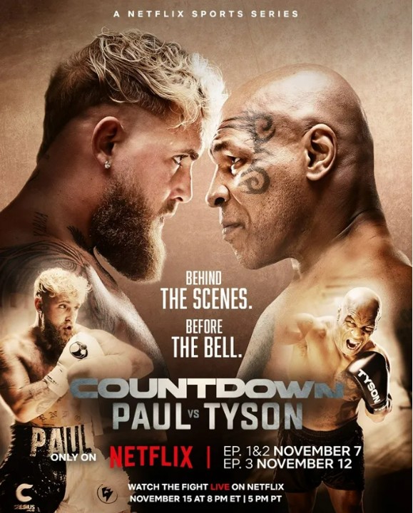 <그림> 넷플릭스의 <마이크 타이슨 vs. 제이크 폴> 포스터. 화제성 높은 초대형 복싱 이벤트를 1회성 생중계로 끝내지 않고, 오리지널 스포츠 시리즈 형태의 부가 콘텐츠로 영리하게 풀어냈다.