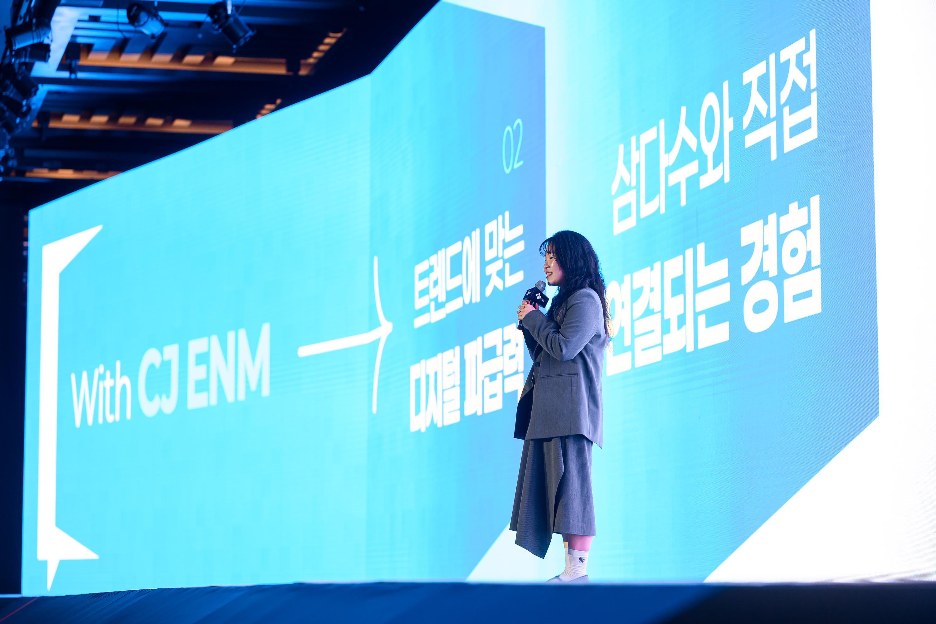 <퓨젠바이오 세포랩> 역시 (브랜드마케팅 박성수 팀장님 발표)CJ ENM과 단순한 매체 파트너를 넘어 커머스까지 통합 캠페인 전략을 설계하였고 <태풍상사> IP를 적극 활용하여 진행한 결과 매출 신장과 더불어 '주목받는 브랜드 1위' 또한 달성할 수 있었음을 광고주들과 공유하며, 행사 후 이어진 참석자 인터뷰에서 "브랜드 확장 사례가 매우 구체적이고 데이터나 실행 사례 위주의 구성이라 인사이트 있고, 유익했습니다." "삼다수, 세포랩 클라이언트 분들이 직접 경험을 공유해 주신점이 와닿았다" 등 호평을 받았는데요.
